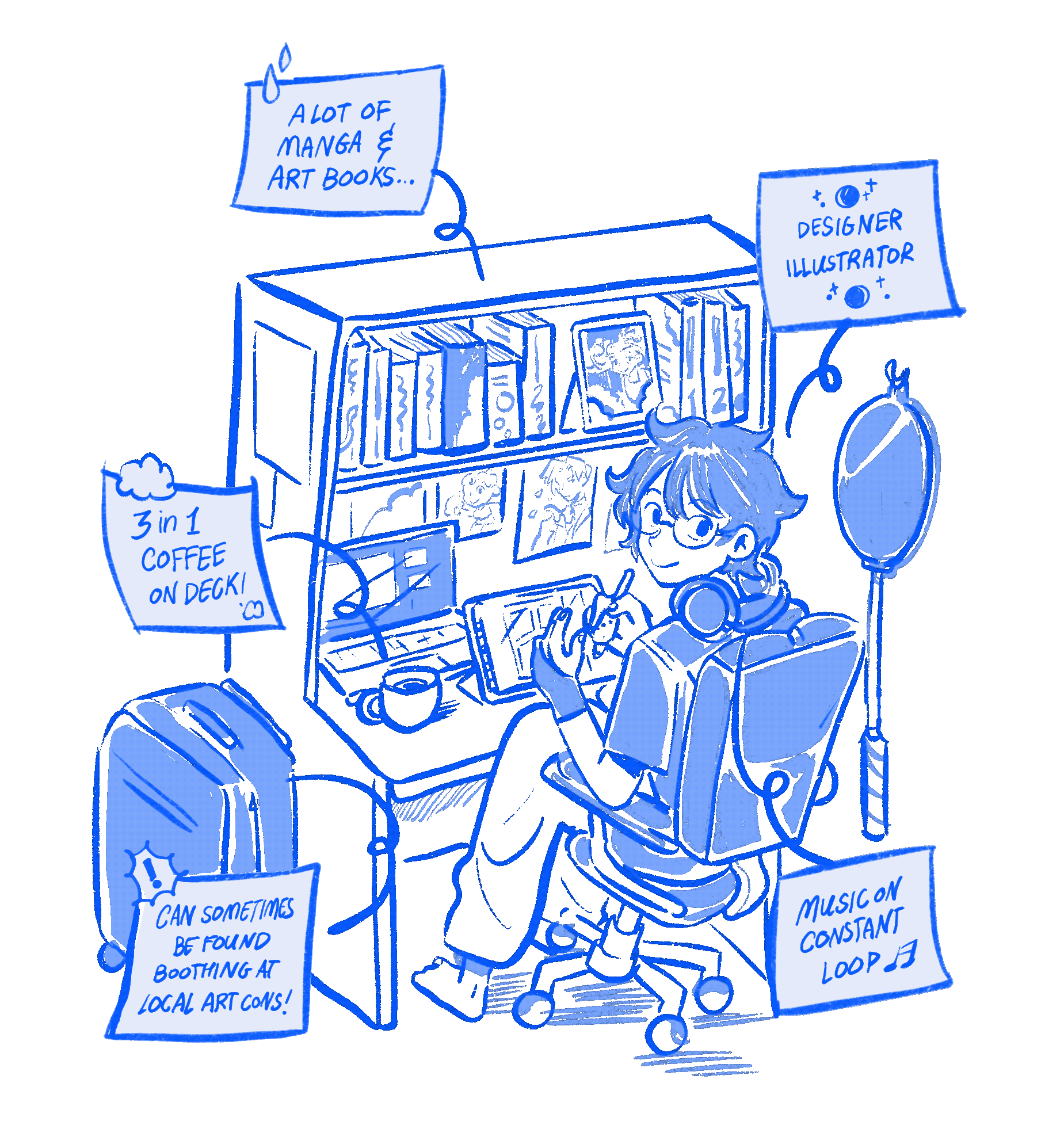 Blue | ဘီလူး is a Burmese multidisciplinary creative, with a BFA in Design Arts with Visual Communications major from NTU ADM. They're currently based in sunny Singapore, and designing for a local indie comic publisher.Their illustration work has been published for Wei Wei's Piece of Cake and Lyna Lankylegs and the Bright Hill Gang: Raining Coconuts under Epigram Books.They are also a member of Cartoonist Coop.They love works with depth and heart in storytelling, be it movies, shows, comics, games, and am always on a lookout for illustration/ comics/ character designs/ graphic design projects and collaborations.To see their works, please visit their portfolio.Drop an email if you'd like to work together with them!